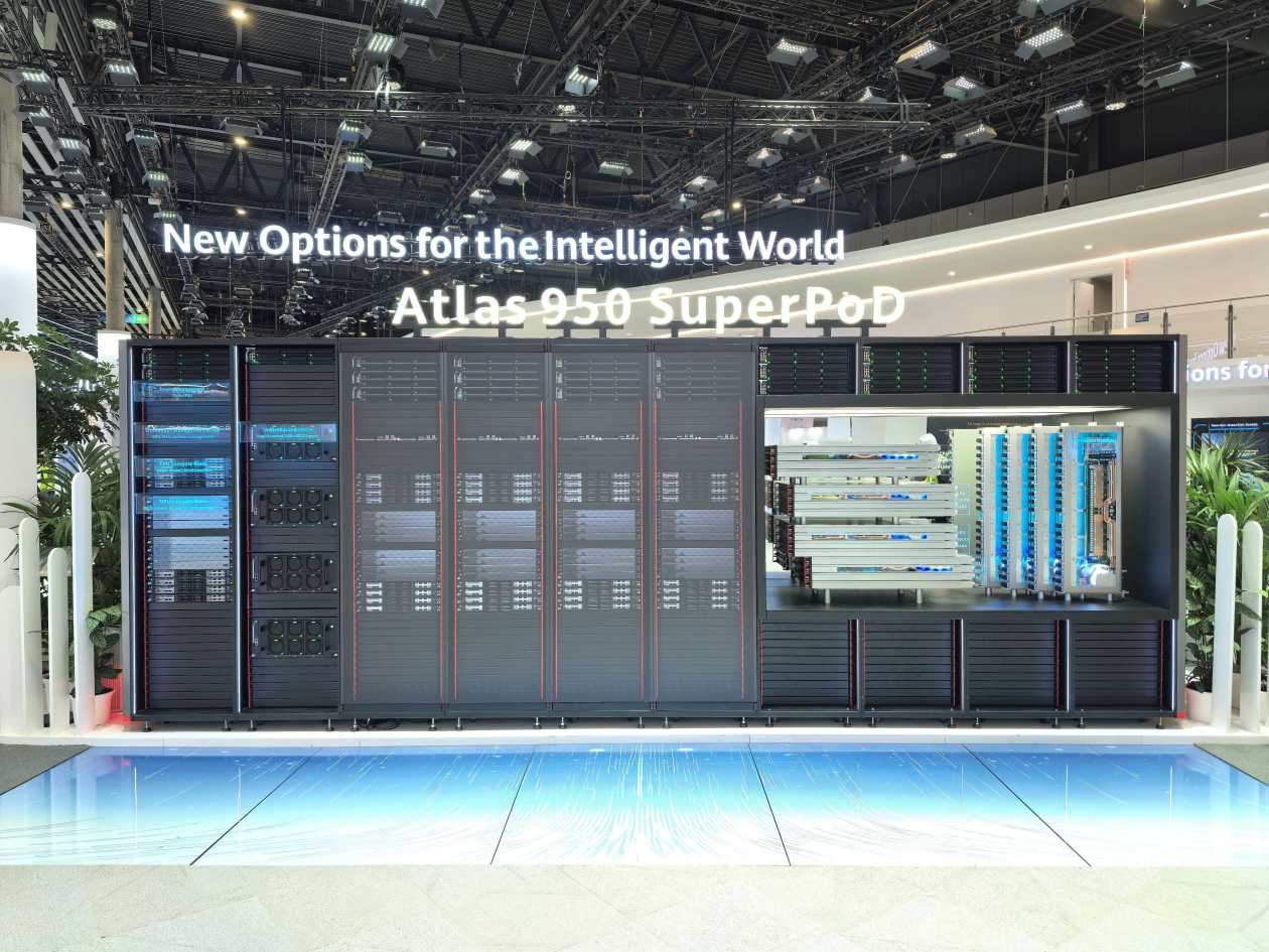 当前,大模型参数规模迈入万亿级时代,智能体(Agentic AI)深度融入各行业生产核心环节,对算力的强度与时延性能提出了严苛要求。华为凭借“集群+超节点”系统级架构创新,在本次展会上首次于海外展示多款算力产品,包括基于灵衢互联协议的智算超节点Atlas 950 SuperPoD、通算超节点TaiShan 950 SuperPoD,以及Atlas 850E、TaiShan 500、TaiShan 200服务器等系列化产品,为全球算力基础设施建设提供多元、高效的解决方案。